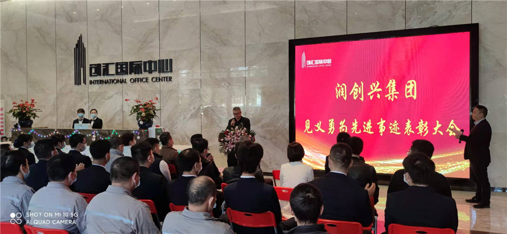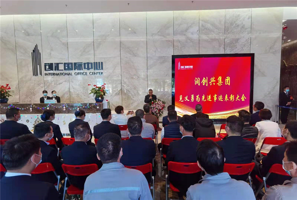 2021年12月30日下午15點,在創(chuàng)匯國際中心一樓大堂舉行“潤創(chuàng)興控股集團見義勇為先進事跡表彰大會“。潤創(chuàng)興集團公司董事長黃亞水、總經(jīng)理吳椰軍、副總經(jīng)理張海波及集團總部和下屬公司全體員工參加了本次表彰大會。