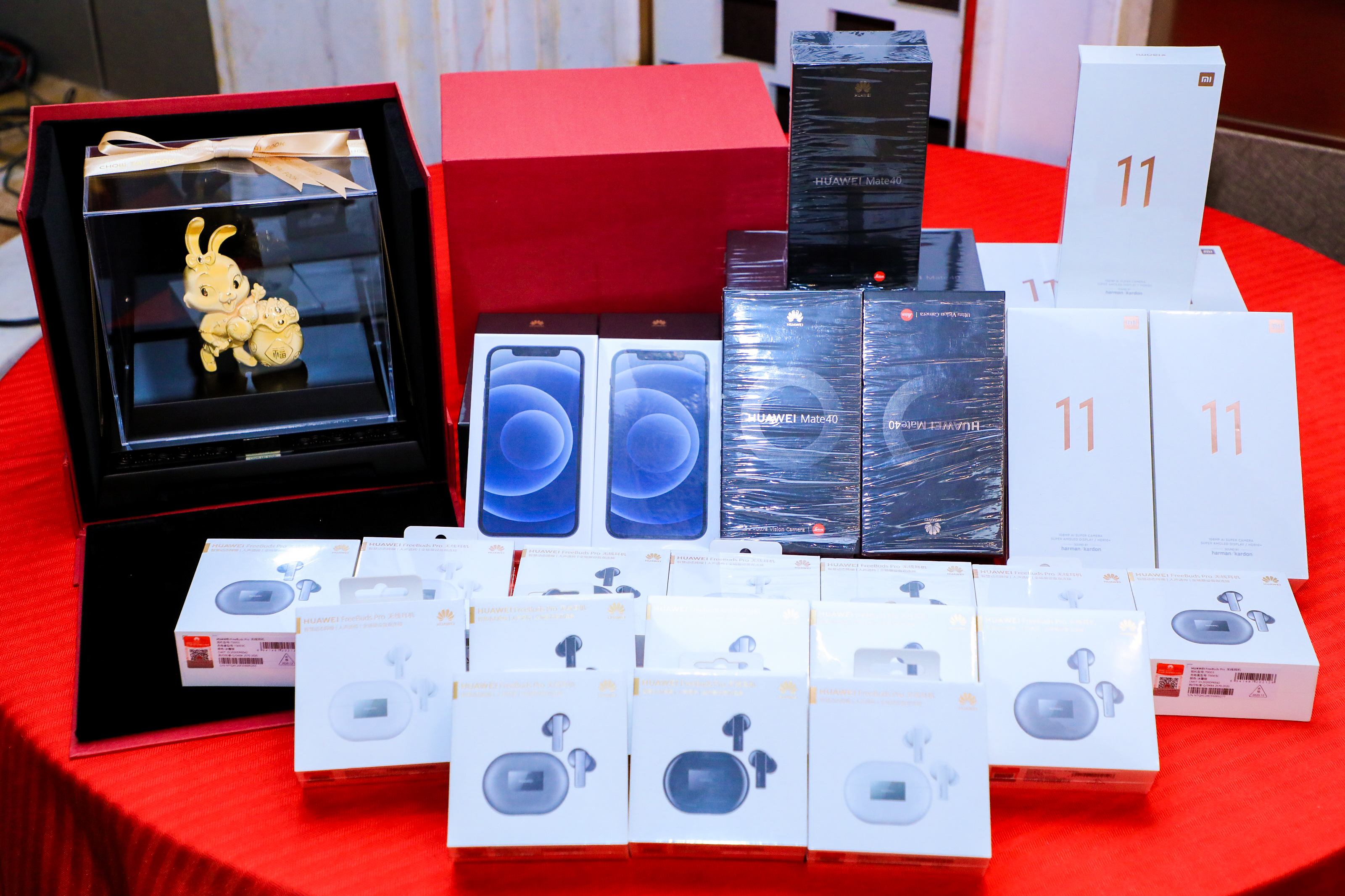 每年年會(huì)最激動(dòng)人心的抽獎(jiǎng)環(huán)節(jié),當(dāng)然是必不可少的。今年的年會(huì)獎(jiǎng)品和現(xiàn)金獎(jiǎng)共計(jì)人民幣約27萬(wàn)元。獎(jiǎng)品如下: 特等獎(jiǎng)一名,價(jià)值23888元的周大福金兔擺件一個(gè);一等獎(jiǎng)4名,價(jià)值6688元的華為Mate50和Apple iphone 12手機(jī);二等獎(jiǎng)7名,價(jià)值5699元的華為M40手機(jī);四等獎(jiǎng)9名,價(jià)值4299元的小米11手機(jī);四等獎(jiǎng)15個(gè),價(jià)值1199元的華為藍(lán)牙耳機(jī),還有現(xiàn)金紅包。除了以上獎(jiǎng)項(xiàng),集團(tuán)黃董事長(zhǎng)為了讓更多的朋友感受中獎(jiǎng)的喜悅,額外增加10萬(wàn)元港幣進(jìn)行抽獎(jiǎng),公司年會(huì)一年比一年好,獎(jiǎng)品也一年比豐厚,展現(xiàn)出潤(rùn)創(chuàng)興集團(tuán)蓬勃發(fā)展的景象,更體現(xiàn)了集團(tuán)公司領(lǐng)導(dǎo)對(duì)員工的重視和關(guān)愛(ài)。