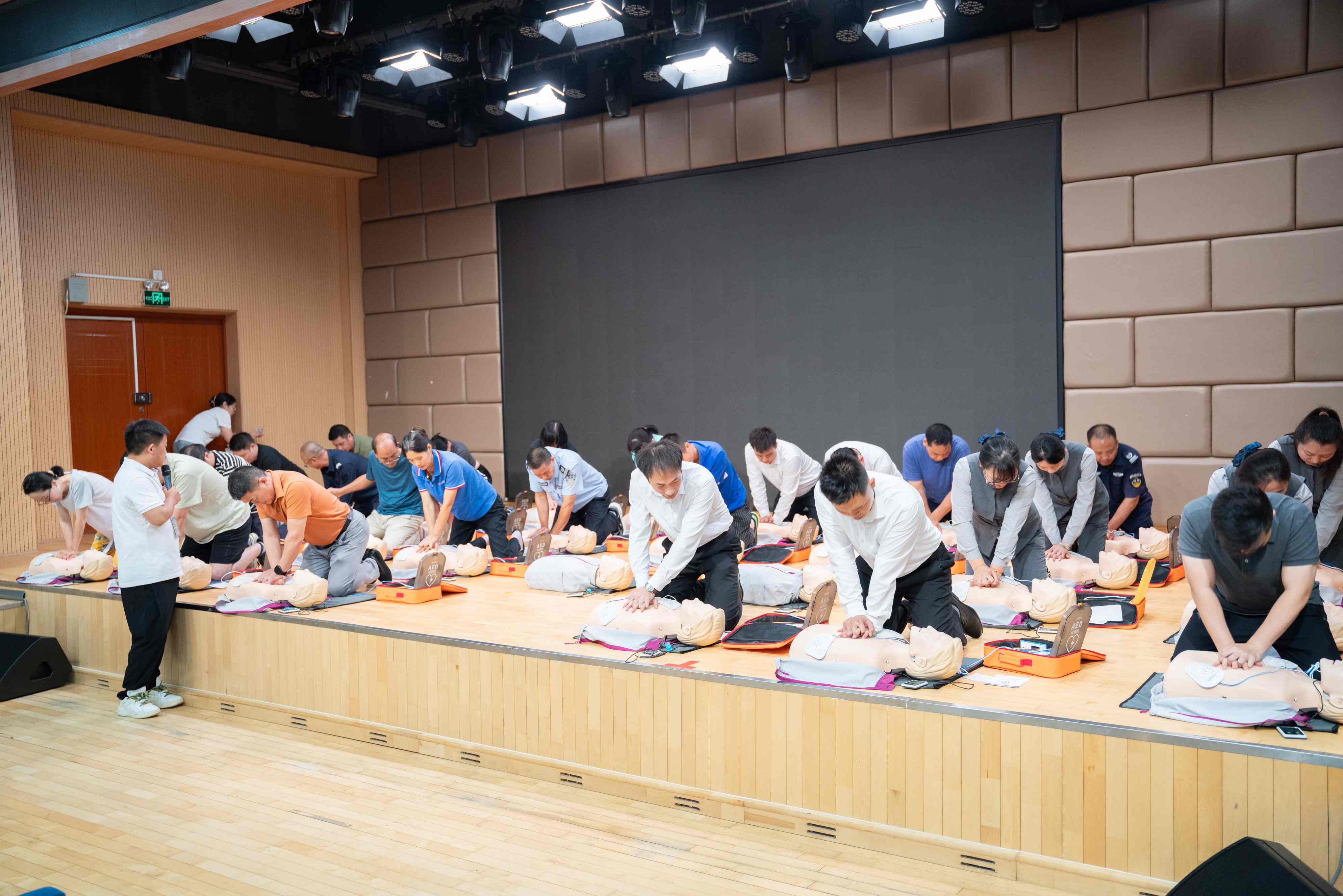 在系統(tǒng)學(xué)習(xí)了急救理論知識(shí)后,第二部分是心肺復(fù)蘇的現(xiàn)場實(shí)際操練,培訓(xùn)老師以橡膠人為模擬道具,現(xiàn)場演示了正確的胸外按壓和人工呼吸方法,學(xué)員們紛紛上臺(tái)按照老師的方法進(jìn)行急救技術(shù)模擬操作,培訓(xùn)老師對(duì)學(xué)員們的手勢、按壓頻率、按壓深度耐心進(jìn)行指導(dǎo),提示要點(diǎn),糾正錯(cuò)誤動(dòng)作,力求每一個(gè)動(dòng)作標(biāo)準(zhǔn)到位。
