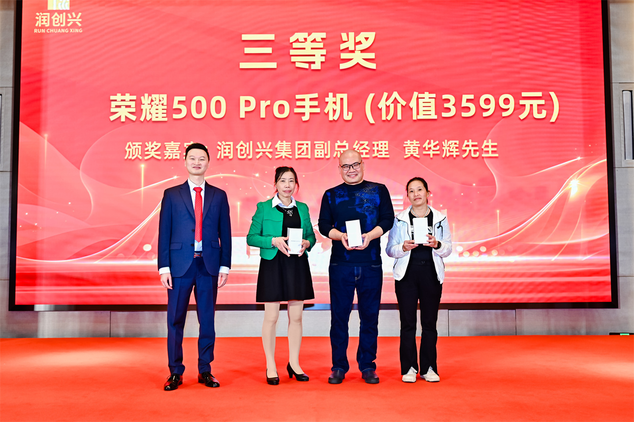 除了以上獎(jiǎng)項(xiàng),集團(tuán)黃董事長(zhǎng)為了讓更多的朋友感受中獎(jiǎng)的喜悅,額外增加10萬(wàn)元港幣進(jìn)行抽獎(jiǎng)。未中獎(jiǎng)的也有500現(xiàn)金紅包,相當(dāng)于全員100%中獎(jiǎng)。公司年會(huì)一年比一年好,獎(jiǎng)品也一年比豐厚,展現(xiàn)出潤(rùn)創(chuàng)興集團(tuán)蓬勃發(fā)展的景象,更體現(xiàn)了集團(tuán)公司領(lǐng)導(dǎo)對(duì)員工的重視和關(guān)愛(ài)。